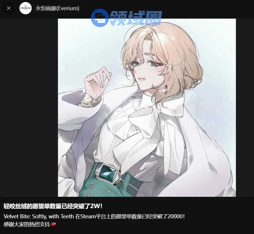 2月1日,《轻咬丝绒》宣布愿望单突破2万