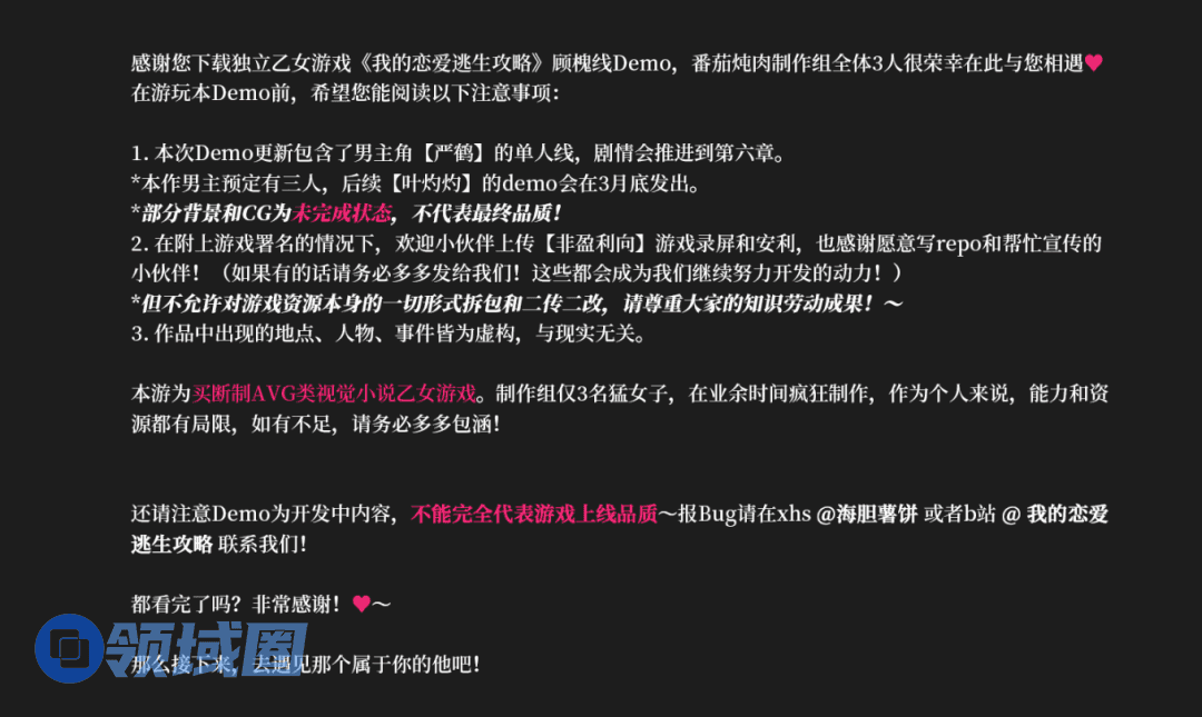 对大多数制作乙女单机游戏的创作团队而言,谩骂来得有些突然,《我的恋爱逃生攻略》(以下简称“《恋逃》”)的创作团队便是如此。该游戏于去年12月上线试玩版本,在Steam收获了不错的口碑和热度。
