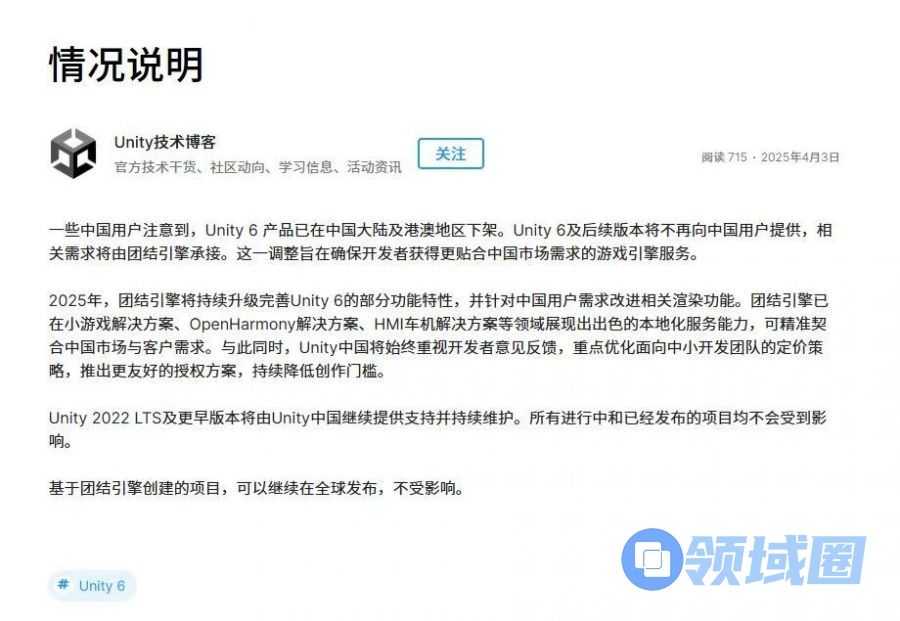 随着Unity 6及后续版本不再向中国用户提供,国内游戏和交互内容开发者正面临关键技术转型。虽然所谓"团结引擎"试图填补这一空白,但其本质仍是Unity的授权版本,不仅技术积累不足,还存在后续技术断层风险。