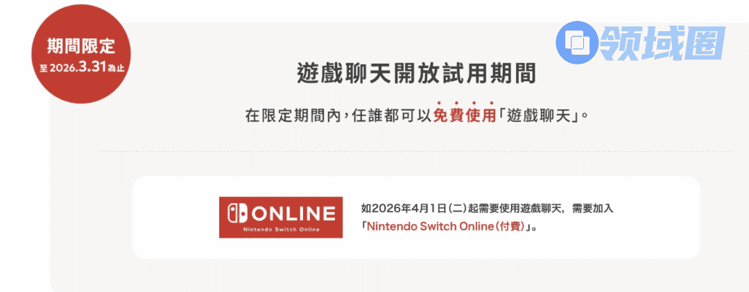 值得一提的是,任天堂的美国副总裁Bill Trinen在接受海外媒体Polygon时确认了另外一件事,NS 2新增的gamechat将不会是免费提供的新功能,而是限时免费开放使用,当2026年3月31日之后,所有玩家必须订阅任天堂会员NSO服务之后才能够继续使用。他将gamechat的战略定位称之为“不仅拥有专属的C键硬件支持,更是整体平台体验的一部分。”