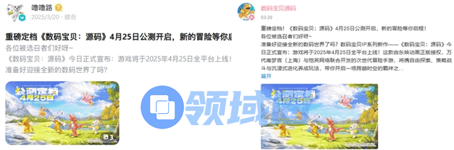 目前,《数码宝贝:源码》已在官网、TapTap、B站、各大应用商店等平台开启预约,并引发许多被选召者的关注和热议。4月25日,《数码宝贝:源码》将全平台上线!感兴趣的被选召者们,可以前往官网及各大渠道完成预约,锁定你的专属奖励,一同迎接公测的到来。