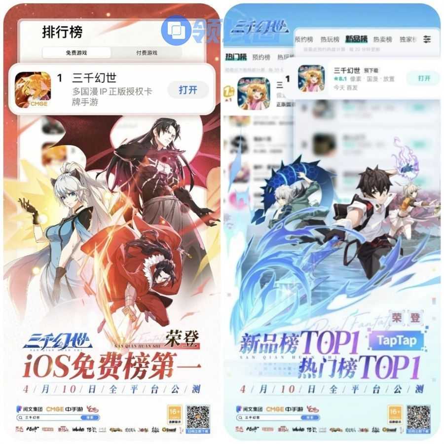 首发当日,《三千幻世》登顶App Store免费榜榜一、TapTap热门榜榜一、TapTap新品榜榜一!