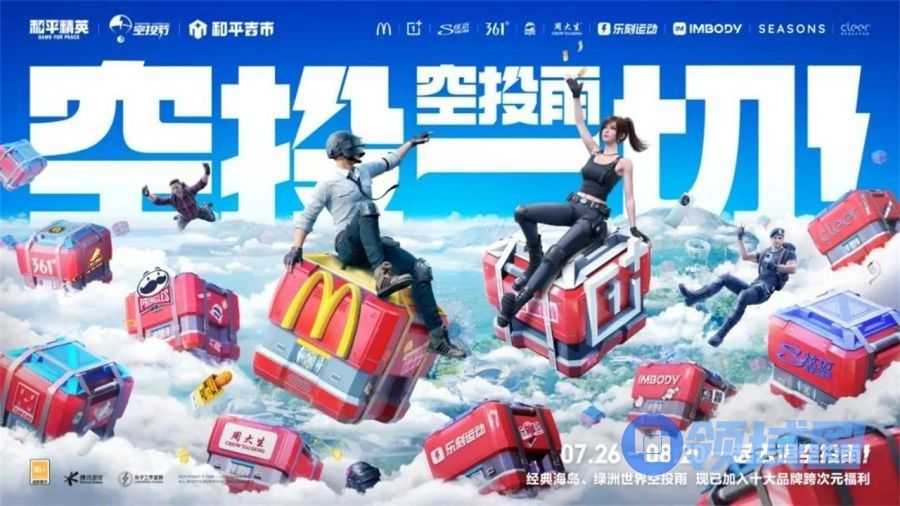 一方面,游戏以海岛主题和战术竞技玩法为基底,尝试进行更多流行向、文化向主题包装,如2021年推出的「飞艇派对」满足了彼时玩家对乐园派对型玩法的需求;同年「光影冒险」联手上海美术电影制片厂重现影坛经典,为玩家上演一场跨界融合的好戏;2022年的「龙狮舞冰雪」则用舞龙醒狮、飞檐、红灯笼等国风元素带出传统节庆氛围,再度唤醒玩家的共同文化记忆;一年一度的空投节,成为游戏虚实共生话题中绕不开的典范。