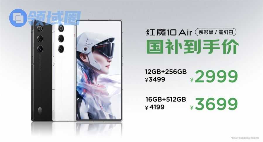 红魔10 Air首发推出疾影黑、霜刃白两款配色,烈焰橙版稍后开售,提供三种配置选择,国补后价格更亲民: