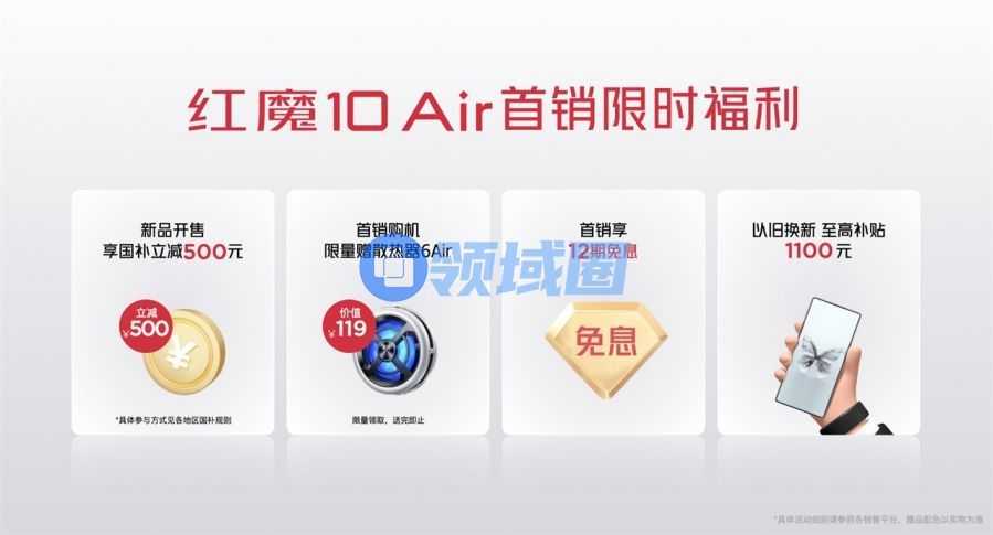 - 在首销期间下单,即获赠价值119元的红魔散热器6 Air,同时至高享12期免息分期;