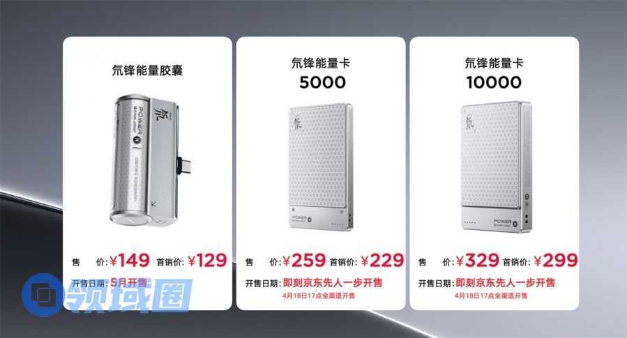 - 氘锋能量卡5000mAh售价259元,首销福利价229元;氘锋能量卡10000mAh售价329元,首销福利价299元。4月16日起京东平台立即开售,4月18日17点全渠道同步发售。
