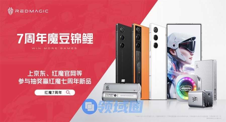 购买产品有福利,参与红魔周年庆活动同样有惊喜。即日起至 4月30日,用户在京东、红魔官网等平台搜索 “红魔7周年” 可参与抽奖,有机会免费赢取红魔10 Air 手机、红魔散热器 6 Pro 及全系氘锋配件,化身“天选锦鲤”。