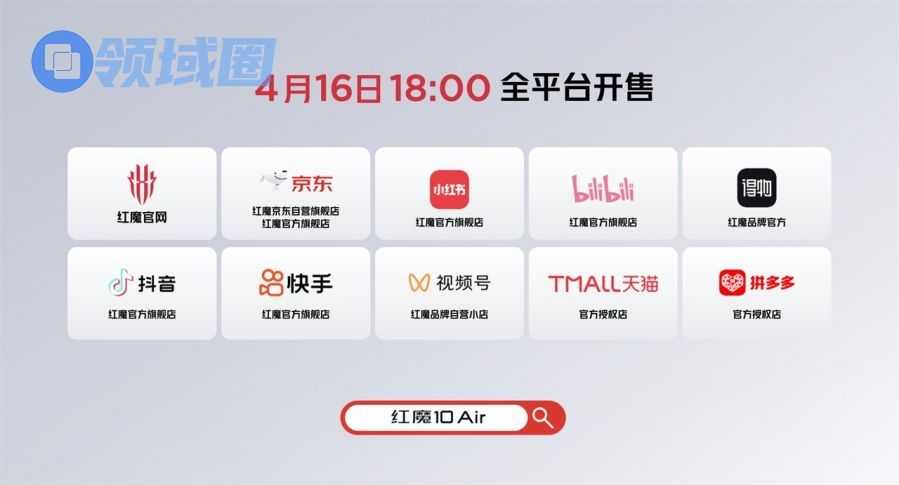 - 4月16日15:45红魔10 Air于京东开启全球首发,18:00 起红魔官网、天猫、拼多多、抖音等全平台同步开售;