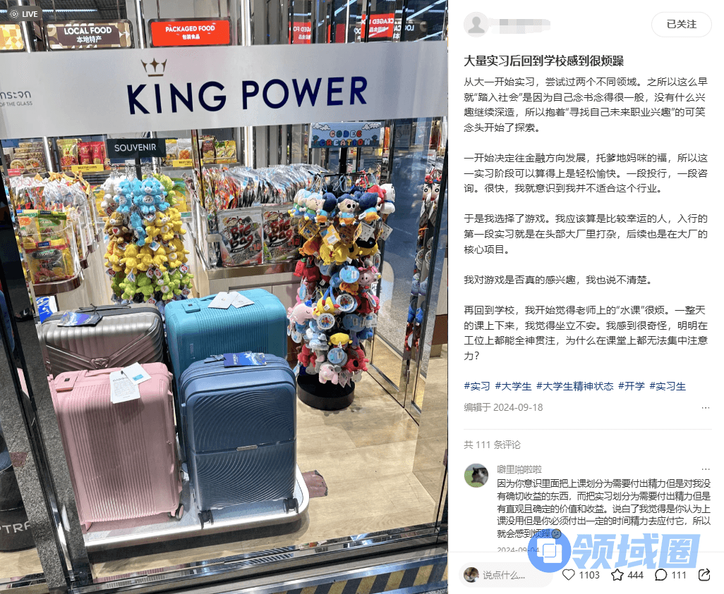 且一个人要兼顾高校双学位课程和不间断的大厂核心岗实习工作,已经算得上是时间管理上的奇迹。同地区985院校语言专业的网友表示,大二大三基本不可能像她所说的“没课”,在辅修金融的情况下,只顾全学业就要连轴转了。