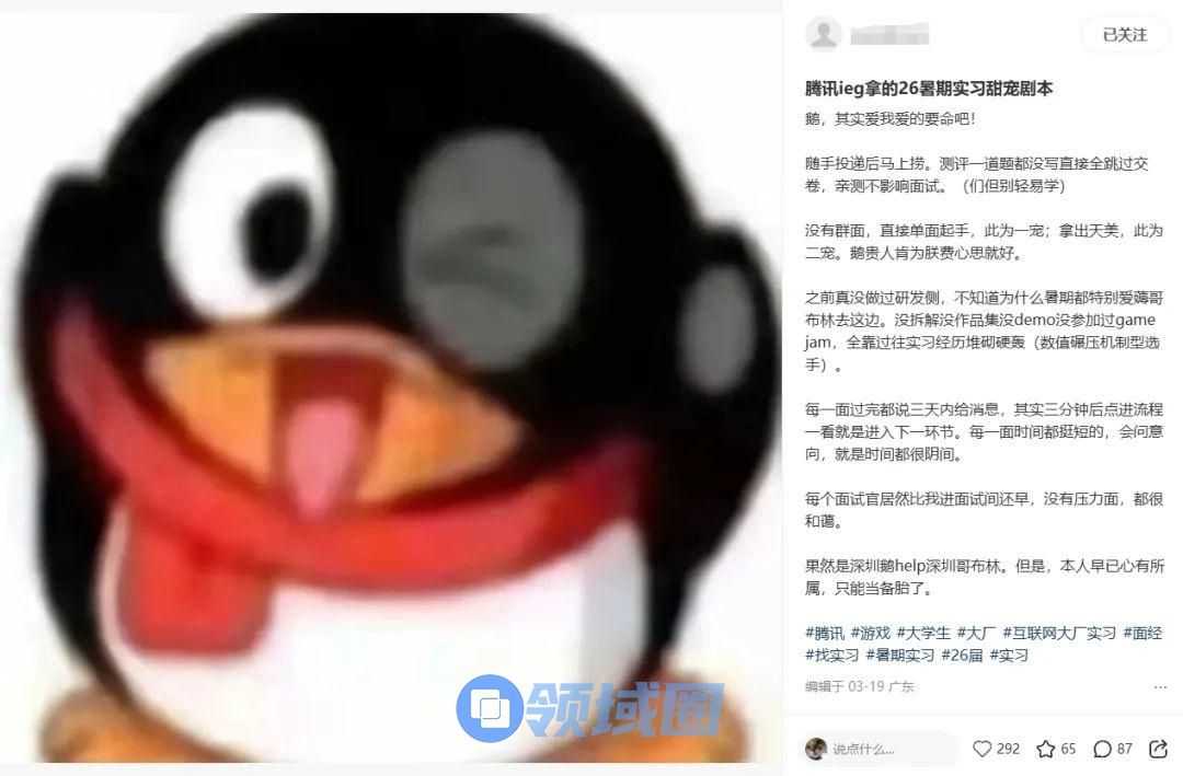 最近,某位在小X书上做游戏实习经历分享内容的五字博主成为了各个行业群里的话题中心。在这位博主口中,国内一线大厂均是“备胎”,HR都是“舔狗”,各种非技术岗位任ta挑选,笔试是可以不做的,面试是毫无压力的,通过率却是100%的。