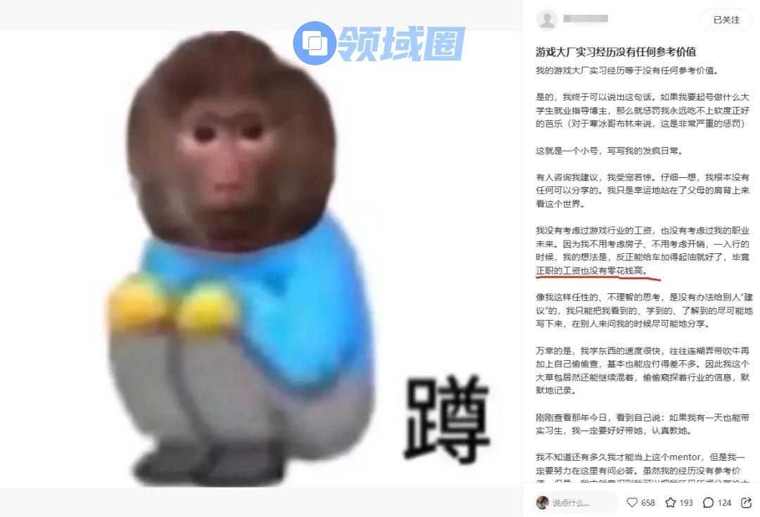 然而这位博主在毫无自证的情况下,愣是靠着这样夸张的剧情,吸引了大量游戏求职人的关注。