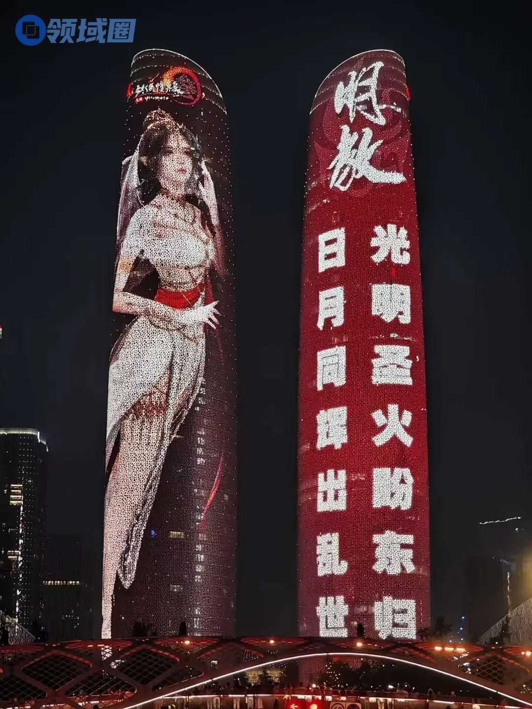 八点终于到了,双子塔上的图案从《王者荣耀》与《哪吒》的联动变成了《剑网三》各大门派的标语和校服,一时间,现场的玩家们欢呼出声。