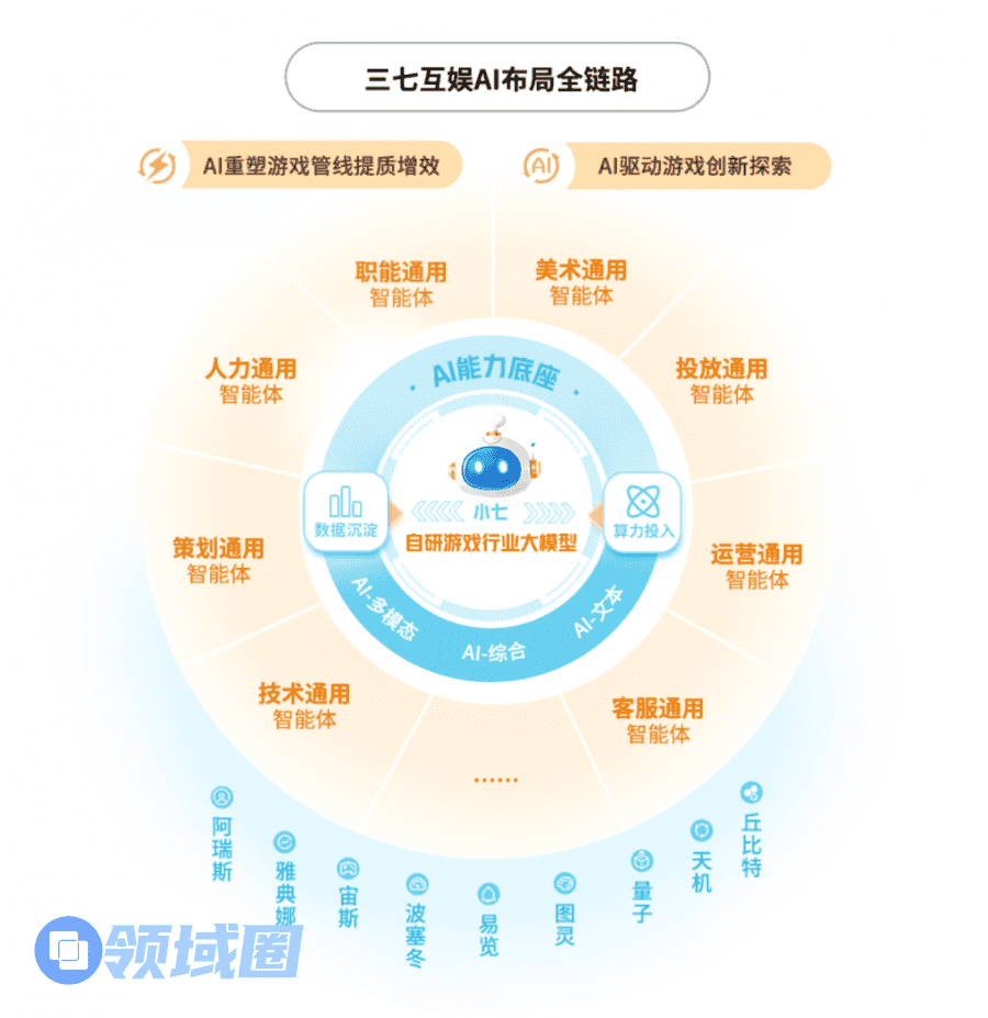 基于此,三七互娱还将“图灵”“量子”“天机”“易览”“丘比特”等公司原有数智化产品全面升级为更加自动化、智能化的AI智能体,通过AI重塑工作流,覆盖市场分析/产品立项/美术设计/开发辅助/广告投放/运营分析/智能客服/通用办公等各业务领域,全面赋能游戏研发与运营,在助力公司业务研发线降本增效的同时,也为公司AI+游戏创新探索上更进一步。
