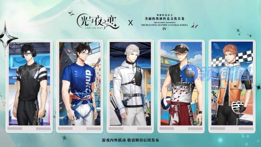 恋爱互动手游《光与夜之恋》公布“奥林匹克文明长卷”联动企划,在游戏内外达成联动合作。五位男主萧逸、陆沉、齐司礼、查理苏、夏鸣星将以全新运动主题卡面登场,卡面融入运动美学,呈现力量与柔美交织的视觉盛宴。此次合作将以游戏为载体,向全球年轻群体传递竞技精神与人文价值。