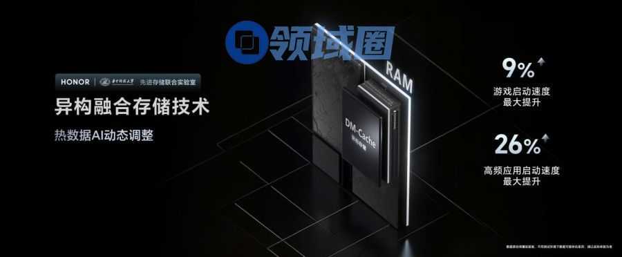 与此同时,荣耀联合华中科技大学,共同组建先进存储联合实验室,在荣耀GT Pro上首发异构融合存储技术。通过在RAM中开辟一块动态存储区域,实现热数据的AI动态调整,大大提升荣耀GT Pro重载游戏及高频应用的启动速度。