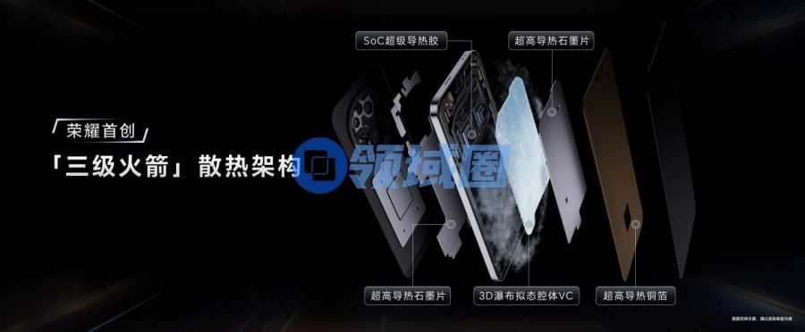 游戏表现如此出色,离不开荣耀首创的“三级火箭”散热架构。荣耀GT Pro行业首发了创新的“SoC超级导热胶”,实现了由芯片到内存的快速散热,显著提升用户重载游戏时的体验。