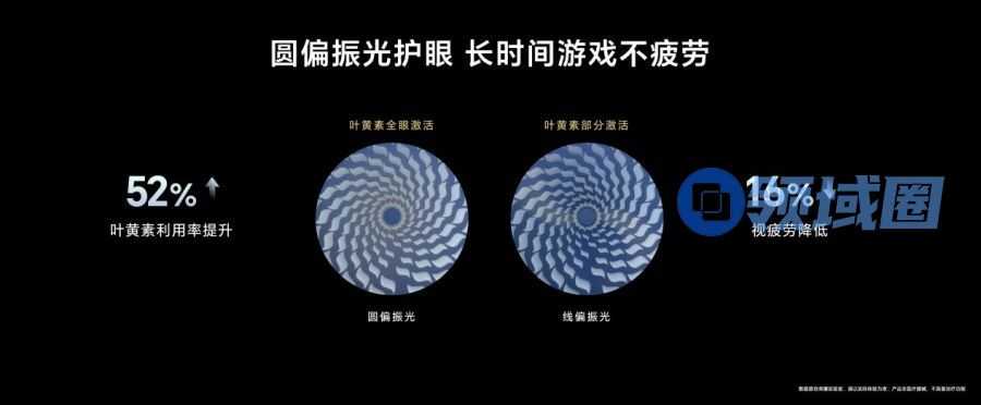 旗舰同款的硬件级圆偏振光护眼,通过模拟自然光在各方向上的均匀分布特性,相比于线偏振光,能够更广泛地激活眼底叶黄素,降低长时间游戏的眼部疲劳。