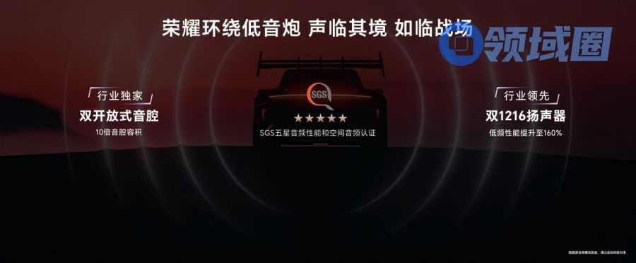荣耀GT Pro还搭载了旗舰同款的荣耀环绕低音炮,采用行业领先的双1216超大立体声扬声器,以及双开放式音腔设计,无论影音还是游戏,都能让用户声临其境、沉浸感拉满。