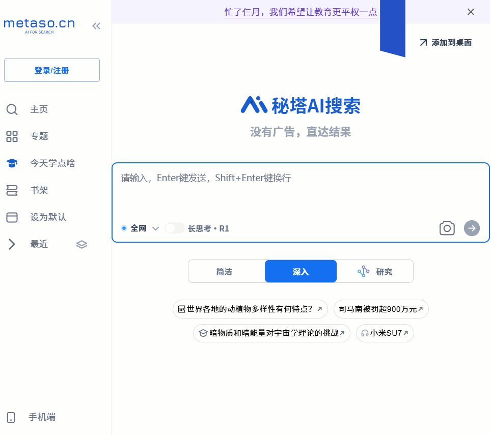秘塔AI上一次出圈,还是因为搭载满血版的DeepSeekR1。在AI加速向C端普及的2025年,专注服务专业人士的秘塔科技也展现了大众化野心。