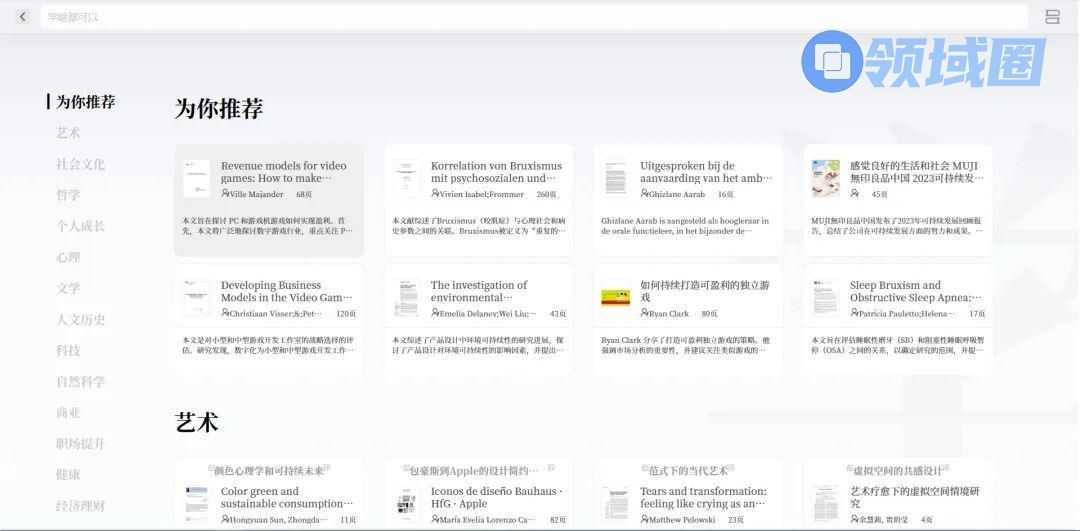 如果实在不知道今天该学点什么,该功能页面还对学习内容进行了细致分类,涵盖商业管理、人文历史、健康养生和个人成长等多个领域,并在每个板块内推荐了精选学习资源。