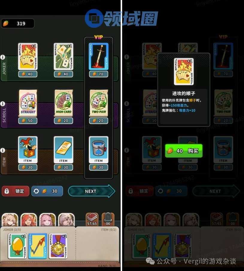 - 击败敌人后,获得硬币奖励,之后进入商店,玩家可以购买鬼牌、卷轴和道具卡,强化自身实力