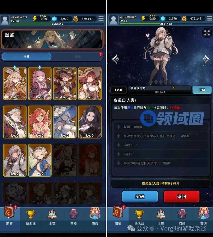 - 突破消耗同名卡碎片提升星级,解锁被动技能词条