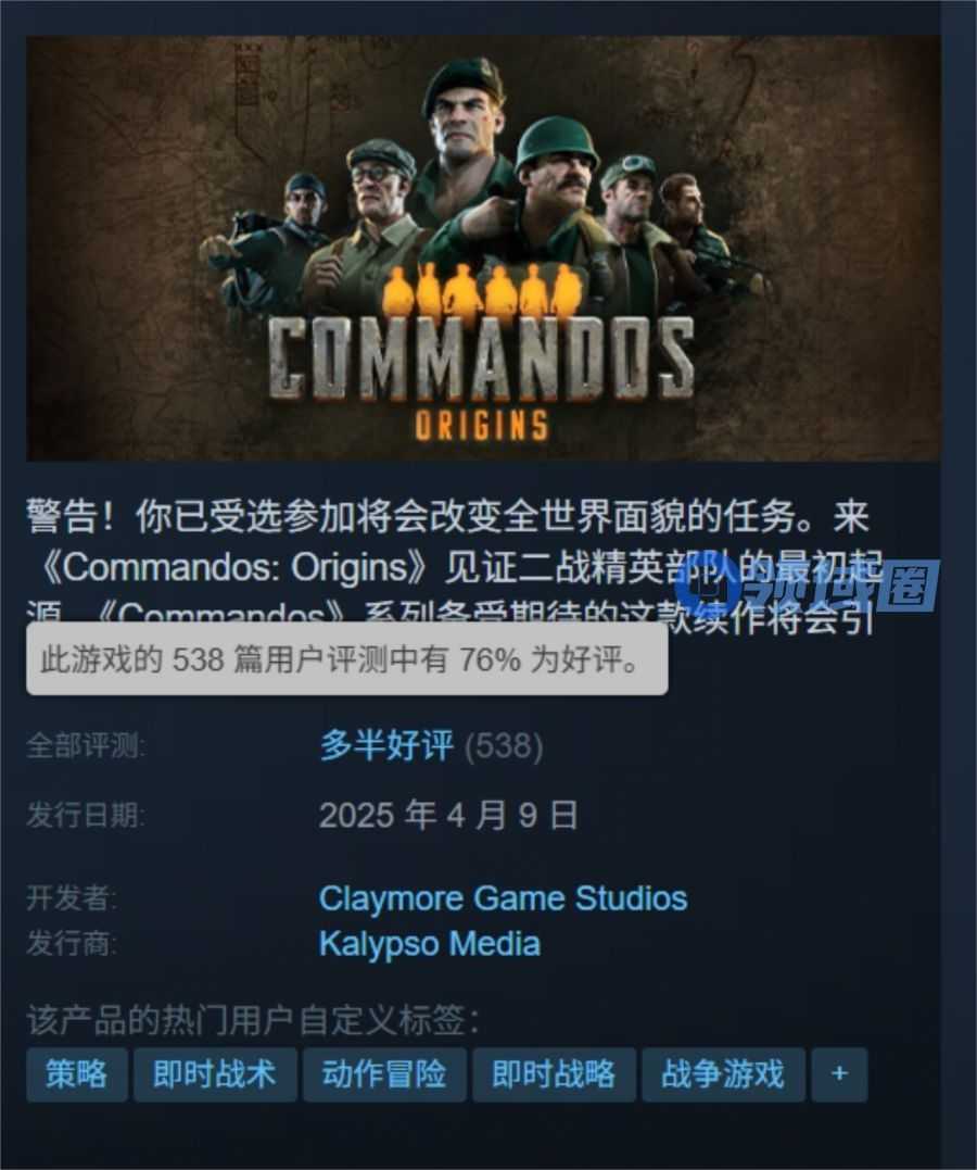 2025年4月9日,《盟军敢死队:起源》正式在Steam平台发售。
