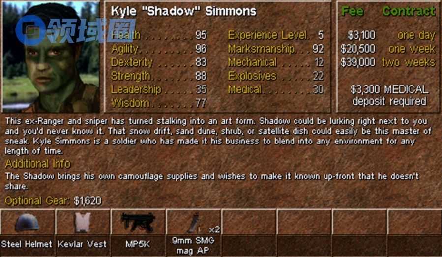 随后,在游戏正是开局之后,除了高低不等的雇佣金额,不同的角色携带的初始装备也是天差地别,至于人物属性能力值更是不一而同——但这并不意味着所有人物的“功能性”就此定格,正相反,除了可以通过游戏内网购(你没看错)或者缴获来升级角色的装备之外,人物面版上的所有属性数值都可以通过锻炼来提升: