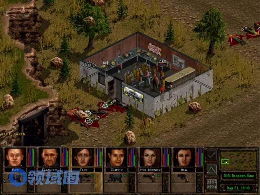 最后,除了在小地图上热火朝天的战术行动之外,在大地图上运筹帷幄的战略行动,同样给我们带来了不少“局外成长”的乐趣:正如前文所示,在《铁血联盟2》当中,拉拢队伍需要资金支持,而游戏内的资金源头,基本就是几处位于交道的矿山资源——用战术拿下这些要地仅仅是个开始,想要保住这些财源,战略层面的训练守军自然是不可或缺的;除了尽量派遣高智力的雇佣军来在最短时间内训练出整队新兵之外,一旦真遇上敌军反扑矿山的事件,我们还可以切换回战术小地图实际参与一番——虽然并不能像RTS或者SLG那样直接调度指挥守军,但在这种敌我双方至少在数量上持平的新局面当中,“潜行”基调的小规模战斗彻底让位给了大鸣大放的重火力阵地战,这种张弛有度、在熟悉的地图上彻底转变基调的游戏模式,同样是《铁血联盟2》令人难忘的乐趣所在。