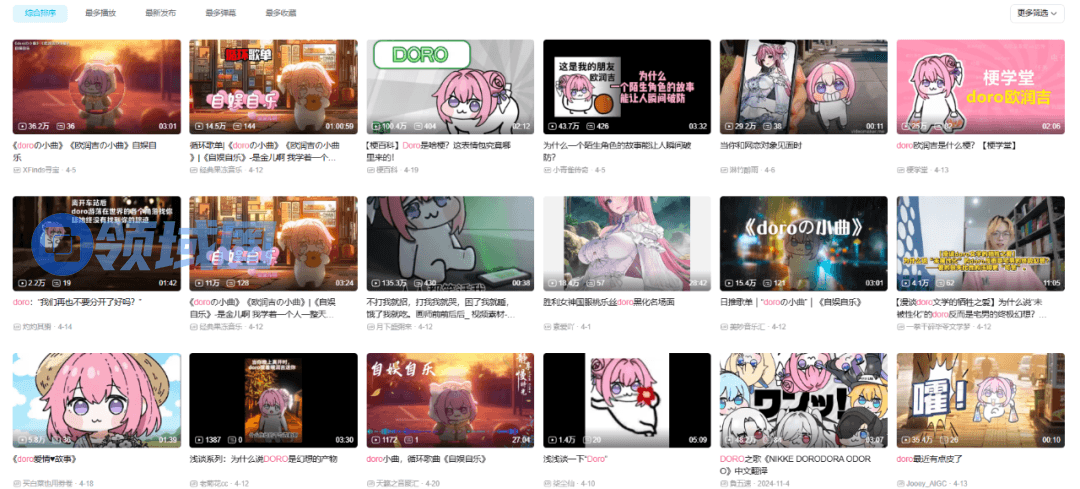 在B站、抖音等年轻人占比较高的社媒平台,与DORO相关的视频稿件以及memes创作,几乎都以十万甚至百万计的浏览量,彰显着这只线条简单,却粉嫩诙谐的视觉形象有多么出圈。