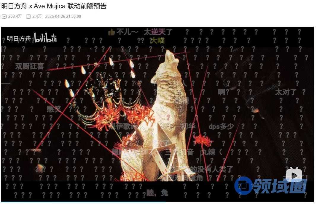 昨(26)日晚间,《明日方舟》在六周年前瞻直播中官宣即将与热门动漫《颂乐人偶》(Ave Mujica)展开联动。如此劲爆的消息一公开,就给二次元社区带来巨大震撼。截止发稿前,“明日方舟联动Ave Mujica”的词条依然排名B站热搜前列,联动PV视频播放量已超220万。