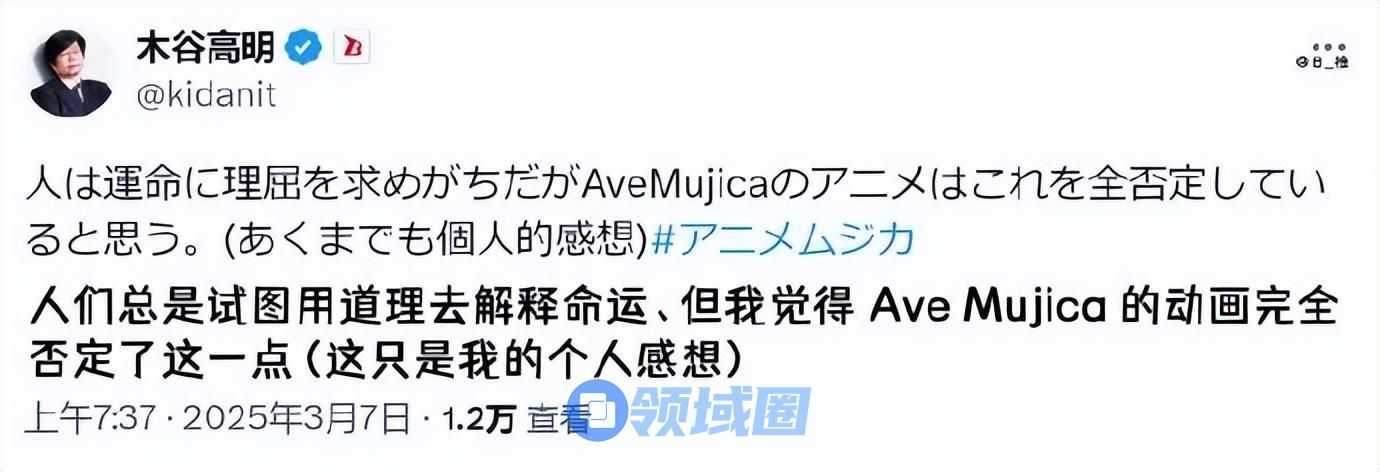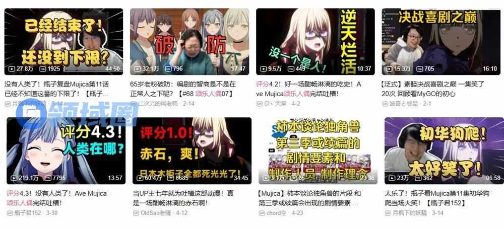 《颂乐人偶》是乐队番,但live演出并非重点,剧情更关注乐队成员间复杂的情感纠葛与人际矛盾。左右互搏的抽象剧情,能把观众气乐,引发了大量吐槽。不合逻辑的剧情,连动画出品方Bushiroad社长木谷高明也在社交平台上吐槽:“人们倾向于在命运中寻找逻辑,但我认为Ave Mujica的动漫完全否认了这一点。”