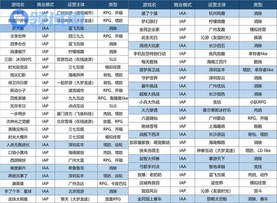虽然《向僵尸开炮》、《无尽冬日》、《三国:冰河时代》、《百炼英雄》等畅销榜常客通吃两大平台,但总体倾向上还是有蛮大差异的,一些偏重度的MMO手转小游戏在抖音畅销榜上的占比份额不多,棋牌类游戏全军覆没,IAA游戏的占比更是来到了十之三四,排名愈是靠后,占比越高。
