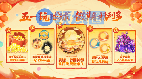 5月1日登录游戏,所有球宝都可领取上线奖励及赛季福利,节日期间,无门槛保底赠送30把超大钥匙,赛季越高钥匙越多,更有百亿金蘑菇等你瓜分,从5月1日至5月5日,每日登录还可领取"超大红包",实现零套路福利派送!