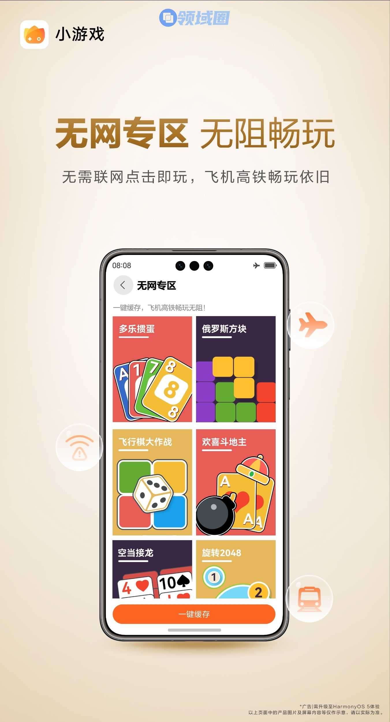 专区内《俄罗斯方块》《旋转2048》两款预置游戏可在断网状态下直接畅玩,其他游戏可提前在有网环境下一键缓存。建议在出行前提前缓存,小游戏几乎不占内存,却能在关键时刻成为“解闷神器”!