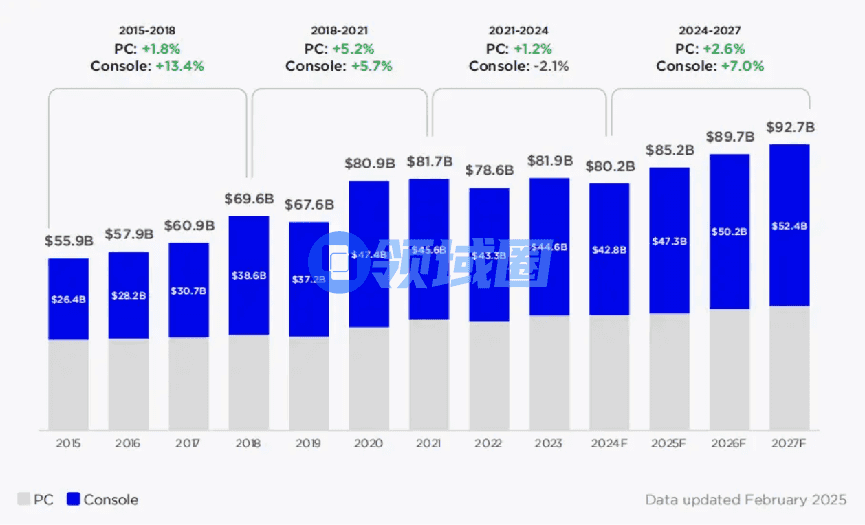 Newzoo的调查显示,全球PC平台的收入,近5年来也恢复了稳步增长