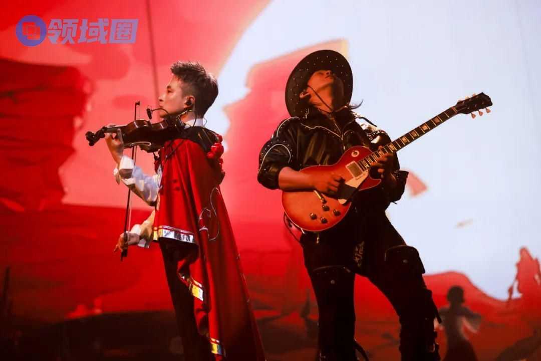 还有飞霄的琵琶唢呐二重奏,缇宝的电子音乐+三人合舞、万敌的电吉他SOLO等等等等,在星铁LIVE,你甚至能看到人气(qiren?)BOSS盗火行者从天上飞下来对着全场放大。