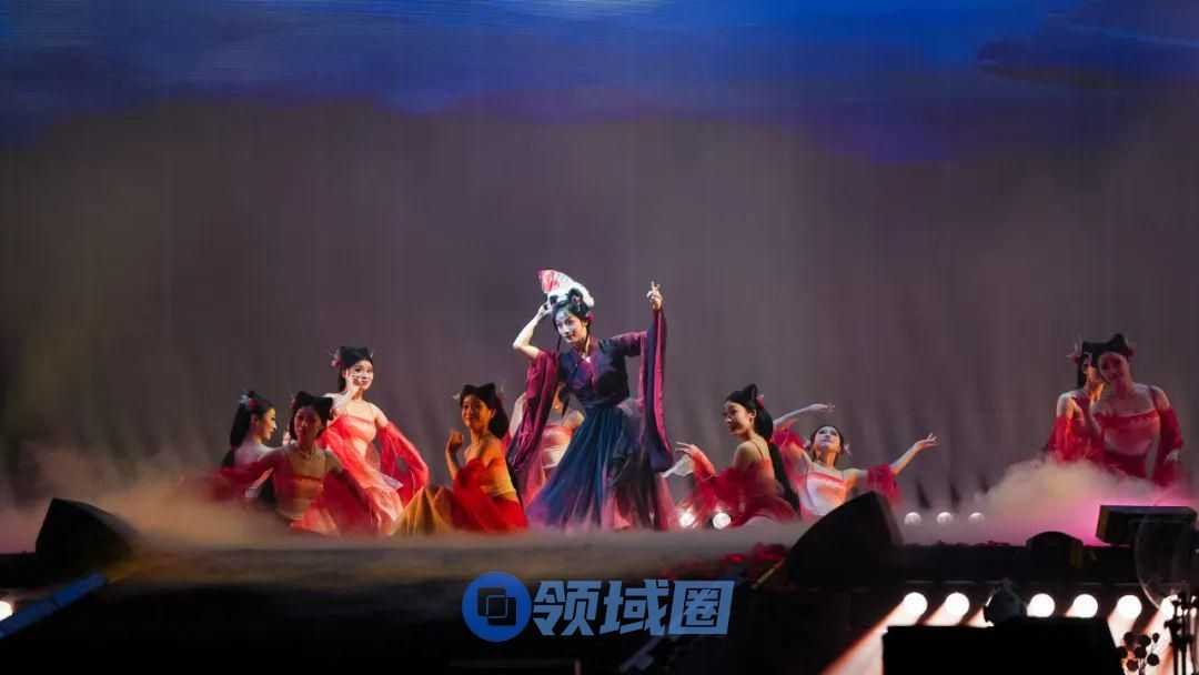 灵砂的部分则是高空威亚加持下的飞天舞,源自敦煌的“朱明美学”氛围下,是一场唯美到极致的高难度表演,紧接着的忘归人国风群舞,恢宏大气的中式交响乐渲染下,是对于“仙舟盛世”四字的呈现。