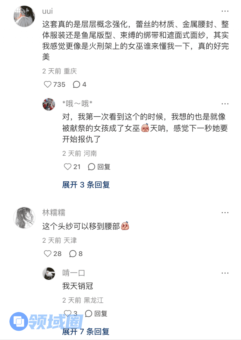 超长透明头纱裹住破碎感,哥特蕾丝鱼尾裙勒出牢笼般的窒息美,连金属鸟笼里的夜莺都在无声尖叫!最绝的是首创“躺平”看板姿势,女巫仰躺在地,眼神却燃着不屈的光,这波“摆烂式反抗”直接拿捏病娇氛围感,截图发朋友圈分分钟被问爆!