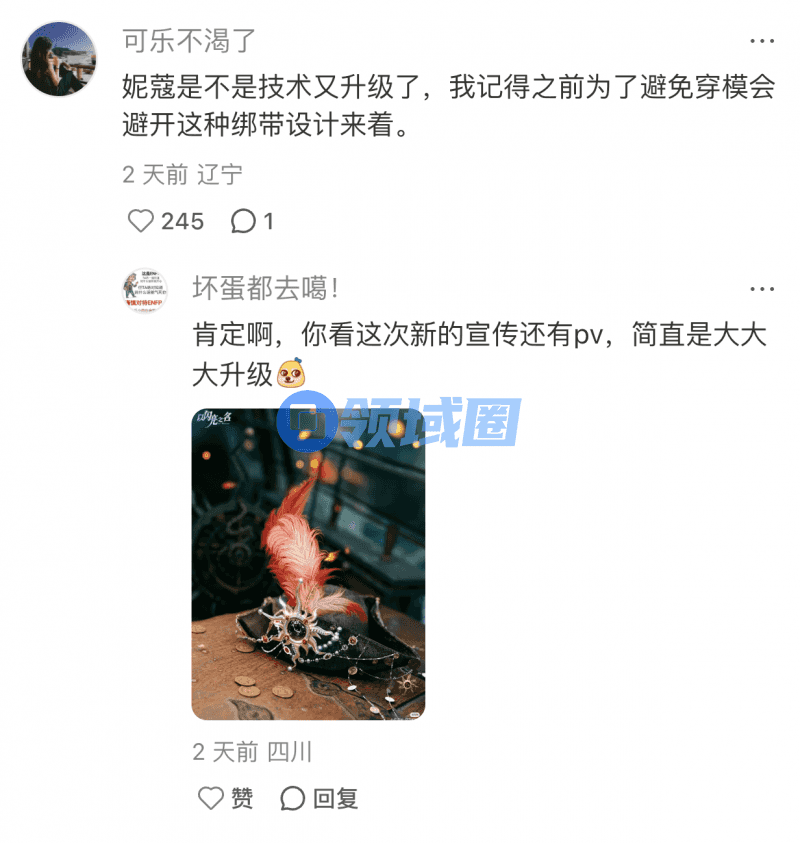 细节控直接狂喜,鸵鸟羽毛X海鸥结构的帽饰,风吹过来根!根!立!体!要说怎么实现这样的设计,以闪项目组为了让绯海掠影帽顶羽毛封神,居然蹲在贝伦塔海边等暴雨!当别人躲雨时,制作组举着相机追着海鸥狂拍,就为了看清羽毛在暴风中炸开的每一个角度,虽然乍听有点好笑,但仔细一想却被这样的工匠精神所感动。