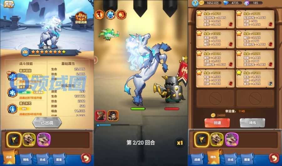 再比如说战魂,战魂同样是玩家战力的重要组成,局中每过一定回合数,玩家便可化身战魂打出高额伤害和特殊效果。战魂的养成主要以洗练属性和阶数为主,同样设计了概率合成升级更高品质的机制。