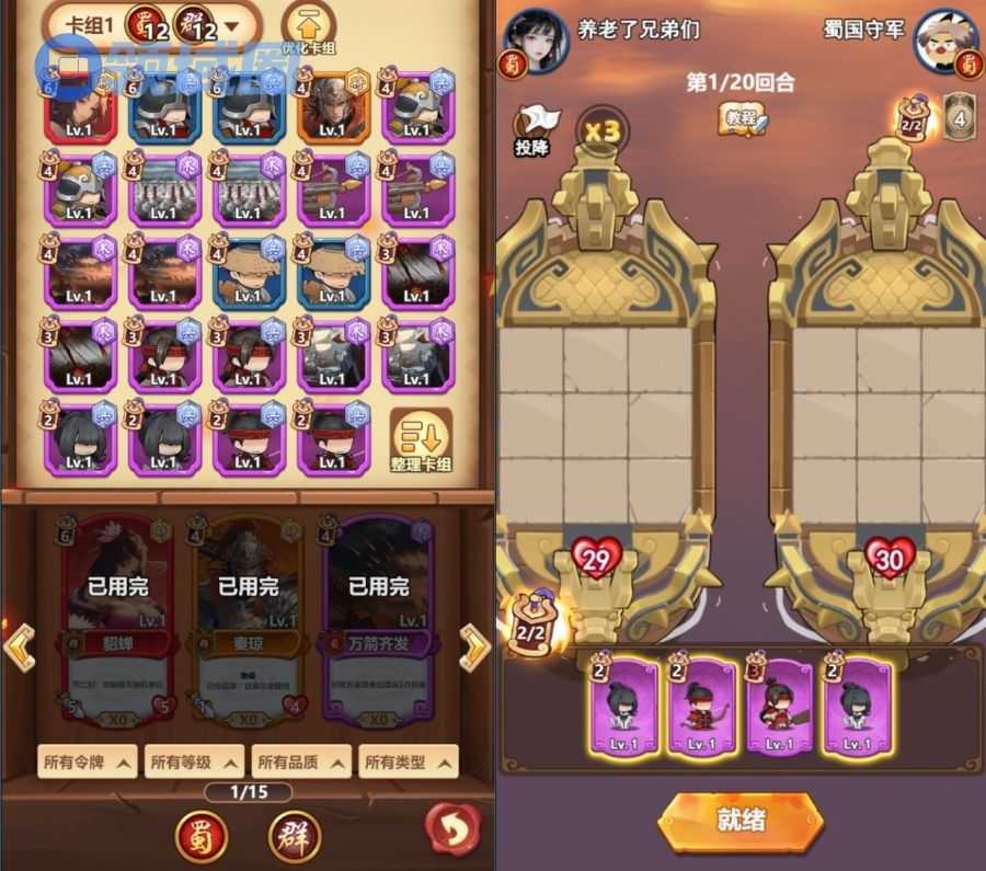 游戏中做得最出色的玩法当属「群雄逐鹿」。「群雄逐鹿」是基于群雄系统下的CCG卡牌对战玩法,每个武将都拥有阵营、攻击力、生命值、技能、出牌费用、兵种之分,并拥有一些功能类和伤害类的法术卡,通过搭配同个阵营(群雄阵营视为所有阵营通用)的武将和法术卡进行对战。局内的舰船是九宫格布局,每个格子可以放置一个单位,出牌从左到右、从前到后的顺序,命中对方舰船可以造成等于攻击力的伤害。