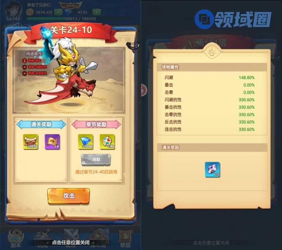 试炼中每个关卡的怪都由六种主属性和主抗性以及三维的数值组成,但其专精的属性却不一样,比如说有的怪专精连击、反击、击晕抗性、连击抗性,这四种属性往往会堆得非常高。