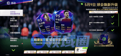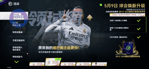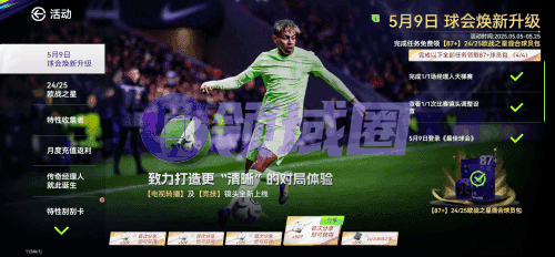 5月9日登陆游戏,首次分享就可以获得经纪人合同的奖励,完成经理人天梯赛,设置一次镜头,甚至还能获得87+球员包,可以说是相当良心了,里面能抽中的好球员可太多了,小编就很想要一个亚马尔,许愿一波!