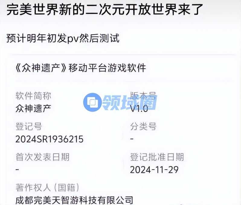 在业绩说明会上,完美世界首次透露了财报中提及的《代号Z》是一款原创二次元幻想题材开放世界多端游戏。此前,网上猜测该游戏是成都完美天智游注册的《众神遗产》。
