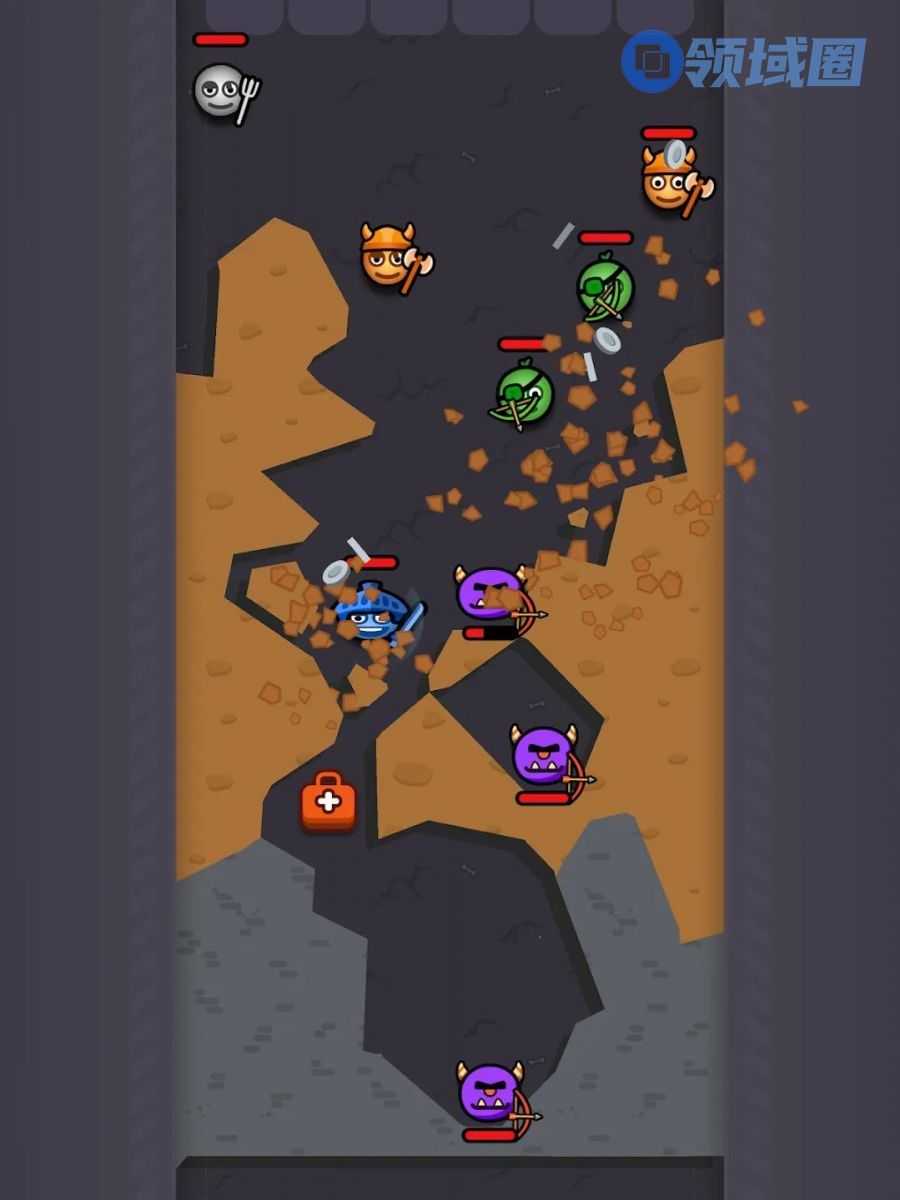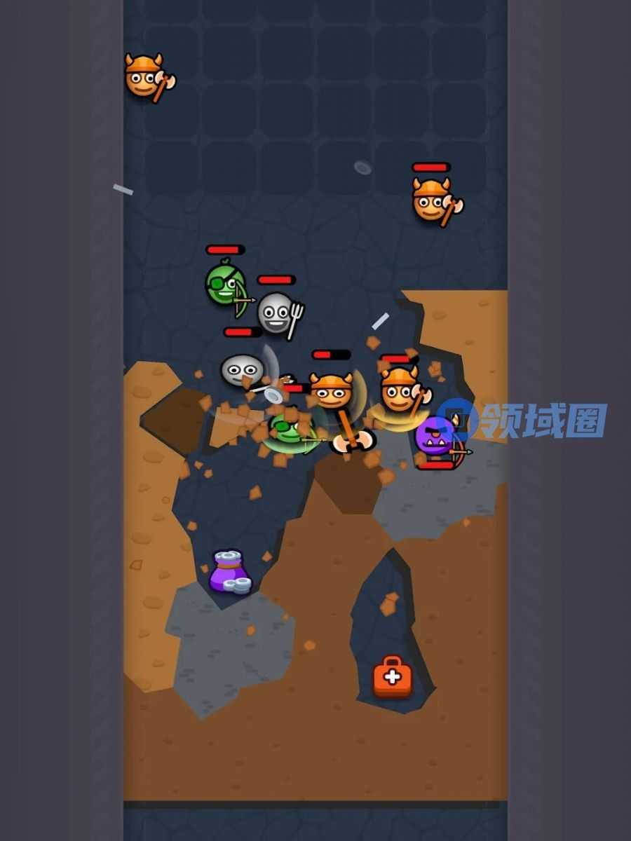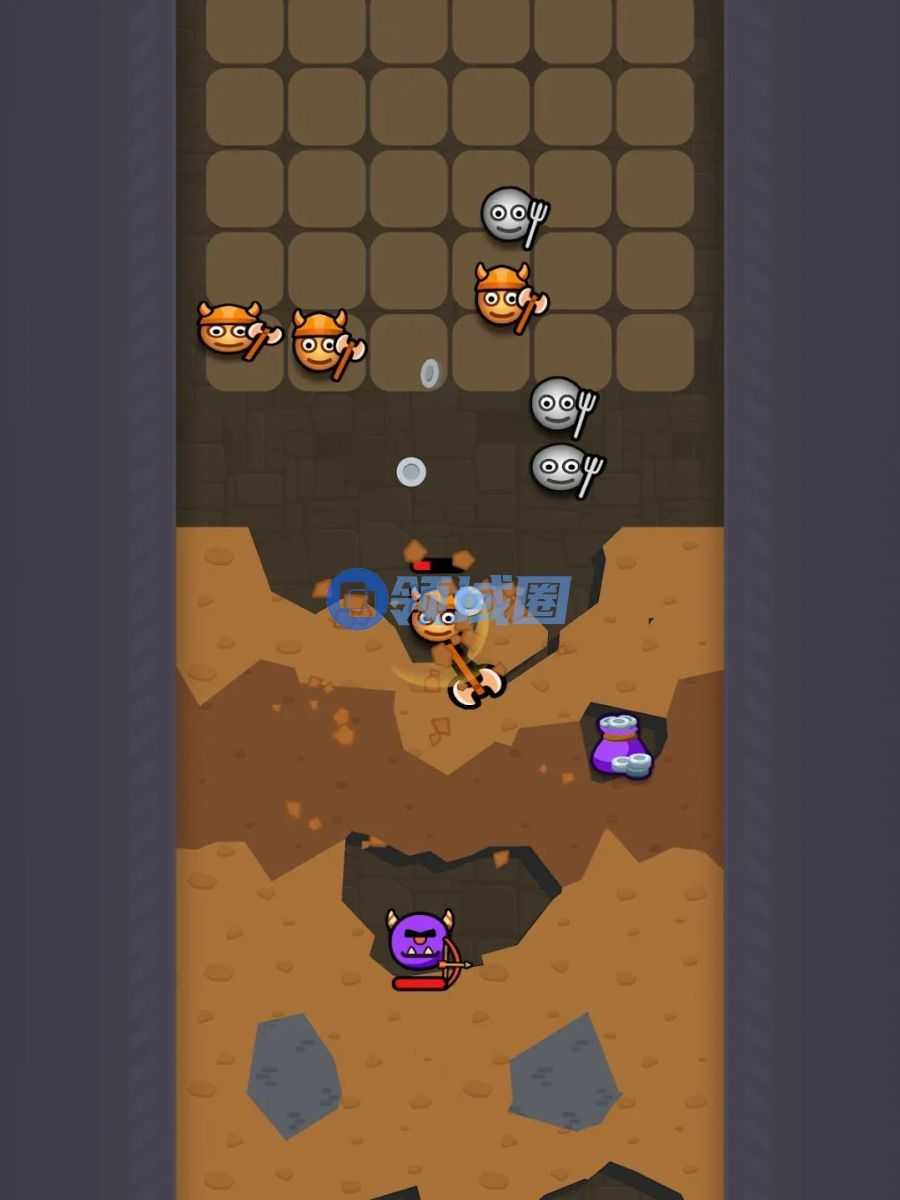 介绍:双玩法组合游戏,先是进行一个限制步数的3合一merge,用小球的兵种进行合成,合成后属性提升,从白色叉兵,进化到黄色斧手、绿色弓箭手、剑士、法师等等;随后是放置RPG阶段,各种小球向下进行挖掘,遇到敌人则对撞掉血,遇到各种地块则挖掘掉血,直至每一关结束继续合成往复循环。