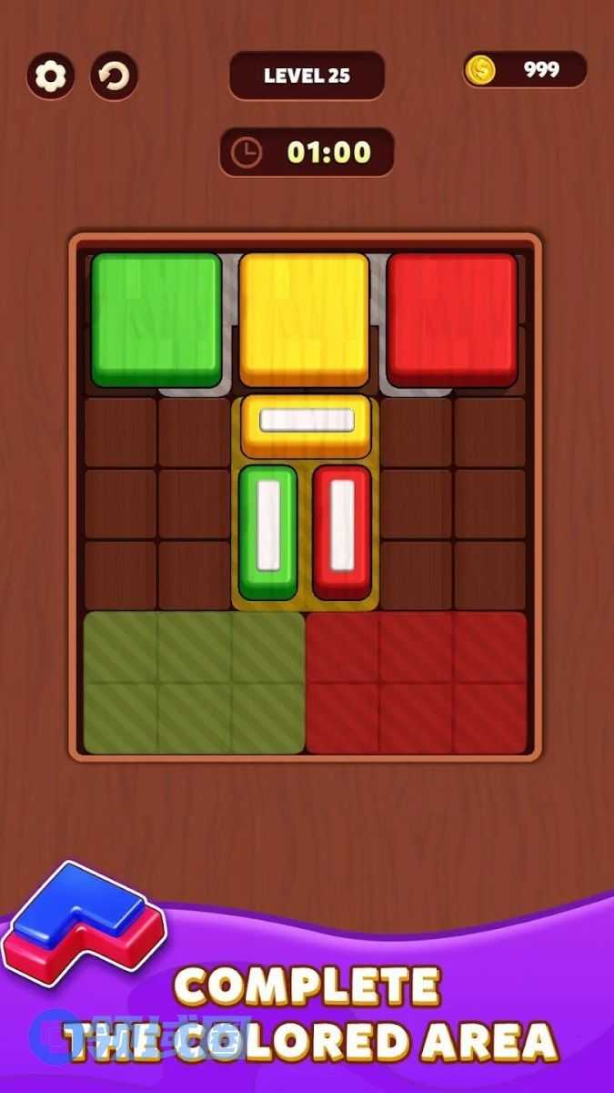介绍:本期的精致超休闲,第一眼以为是《Color Block Jam》的木质版本,但后来发现不是,规则变化了很多,是在棋盘内,把各色砖块,移动到各色对应的虚线区域内,把对应同色区域填满即可消除,可以理解为一个内化消除的华容道,对应《Color Block Jam》是把砖块移动到棋盘之外消除,这款相当于是在棋盘内消除。