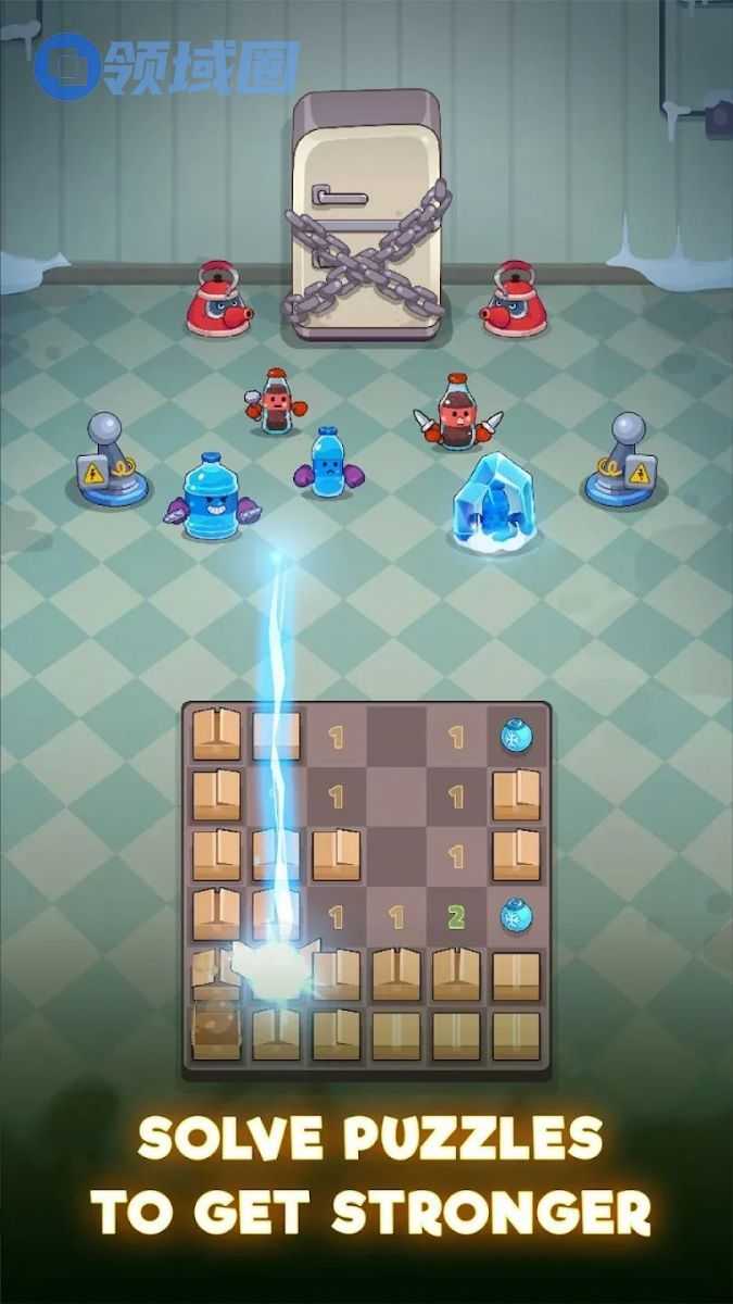 介绍:比较有意思的一种玩法创新,玩家在一个较小的扫雷棋盘,通常是5x5、6x6进行扫雷,并根据表现获得炮台奖励,然后在放置防守玩法中抵御各种敌人来袭。包装上类似各种日用品保护冰箱不受各种病毒的入侵的表现形式。