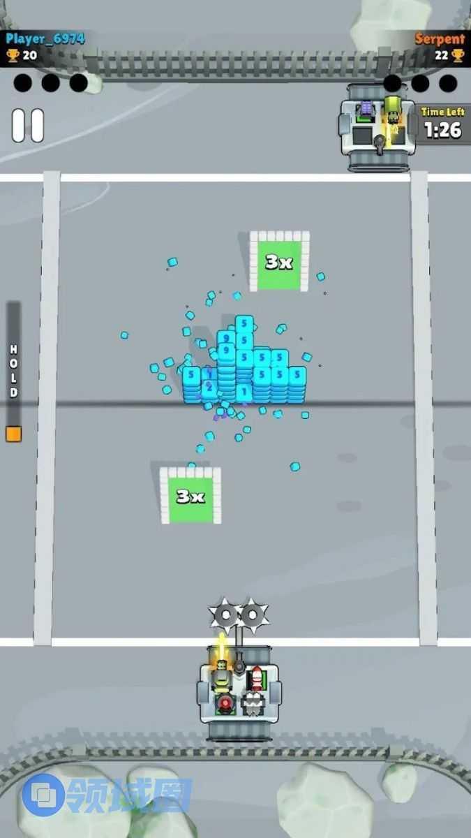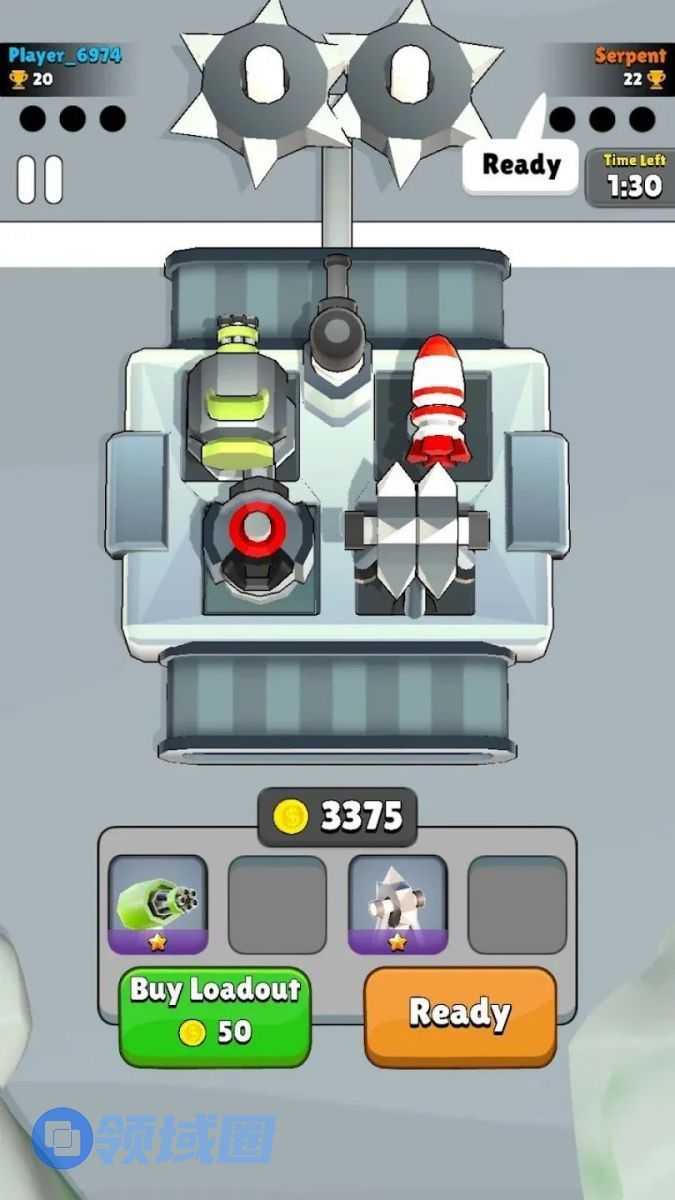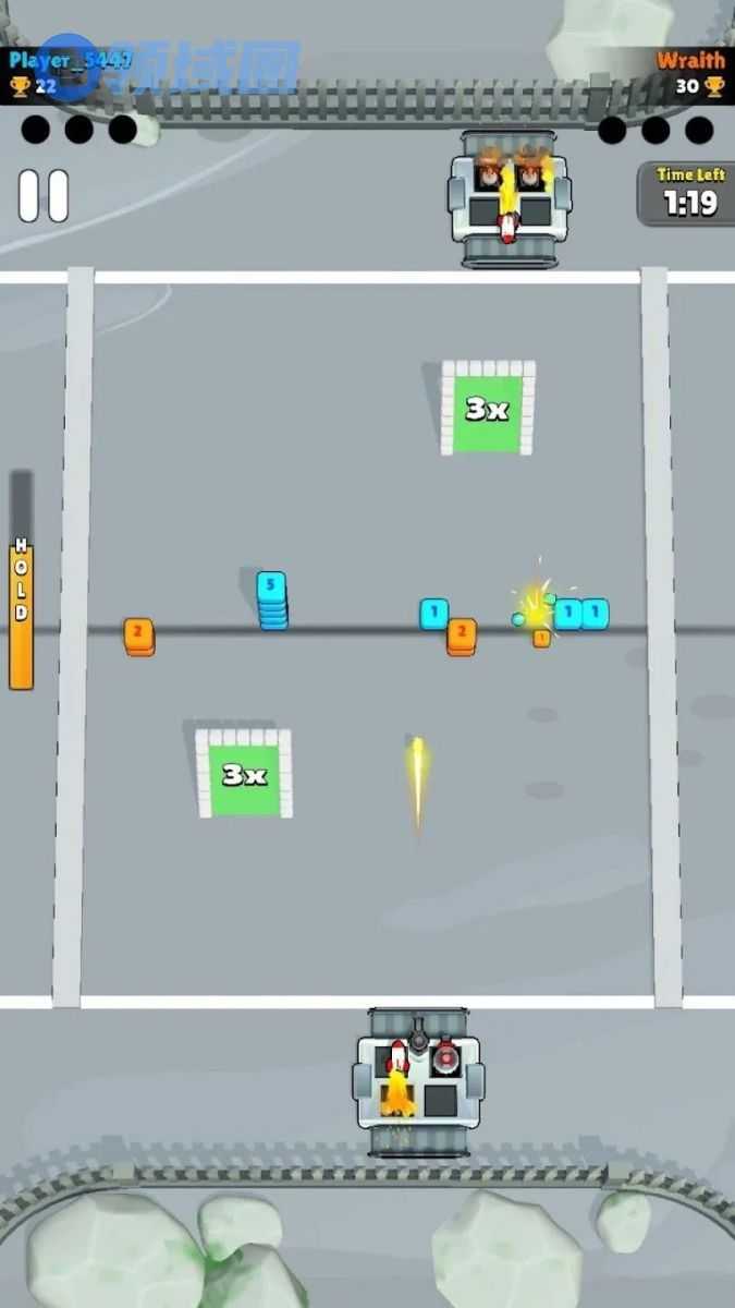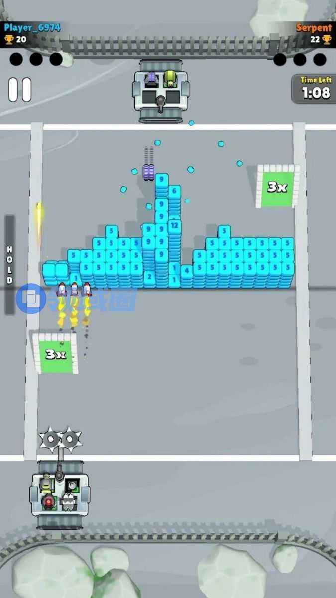 介绍:屏幕上下是两个玩家,进行BO5的多回合PVP玩法规则,用金币买各种炮塔,机枪、导弹、电锯等,进行炮台输出,本身是一个超级简单的背包二合,因为炮台没有形状区别,所以以二合为主。