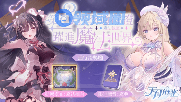 除了全新系统,此次更新亦推出新一轮赛季通行证。踏入第三赛季通行证,将以魔法为主题,除了能免费获得大量觉醒星尘、闪月石、结缘券等奖励外,解锁高级通行证更可获得本季主题全景麻将桌布、牌背及与随机女雀士结缘的「月华雀士礼包」,并可加倍获得一般通行证的丰富奖励。